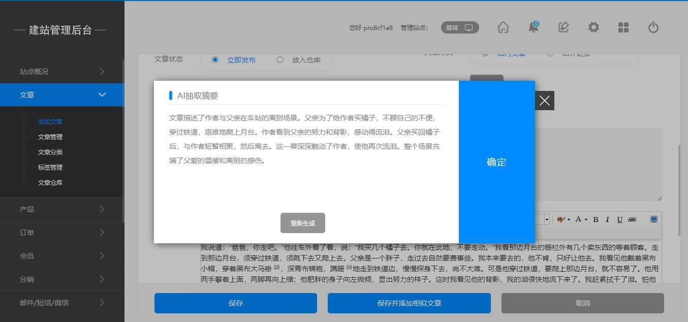 提示:必须要先填写文章详情内容,才能使用AI提取摘要功能,AI使用次数是根据免费的额度来定,超过需要单独购买